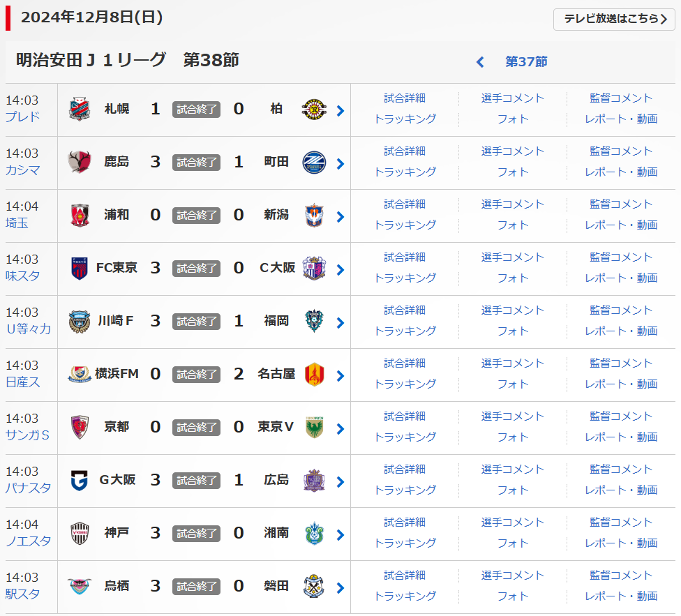 明治安田J1リーグの第38節が、12/8(日)に行われました。