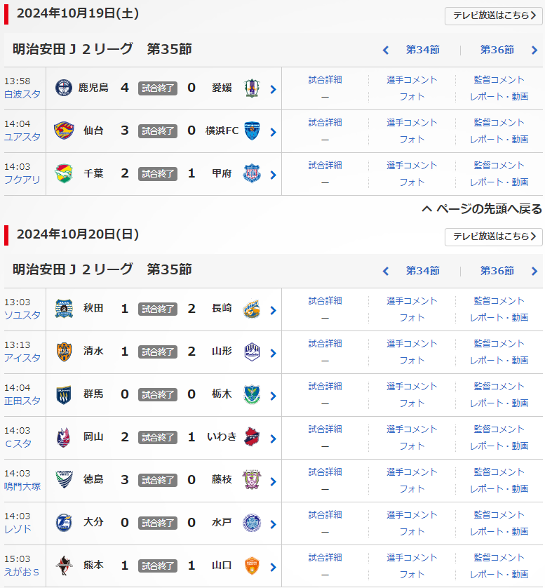 明治安田J2リーグの第35節が、10/19(土),20(日)に行われました。