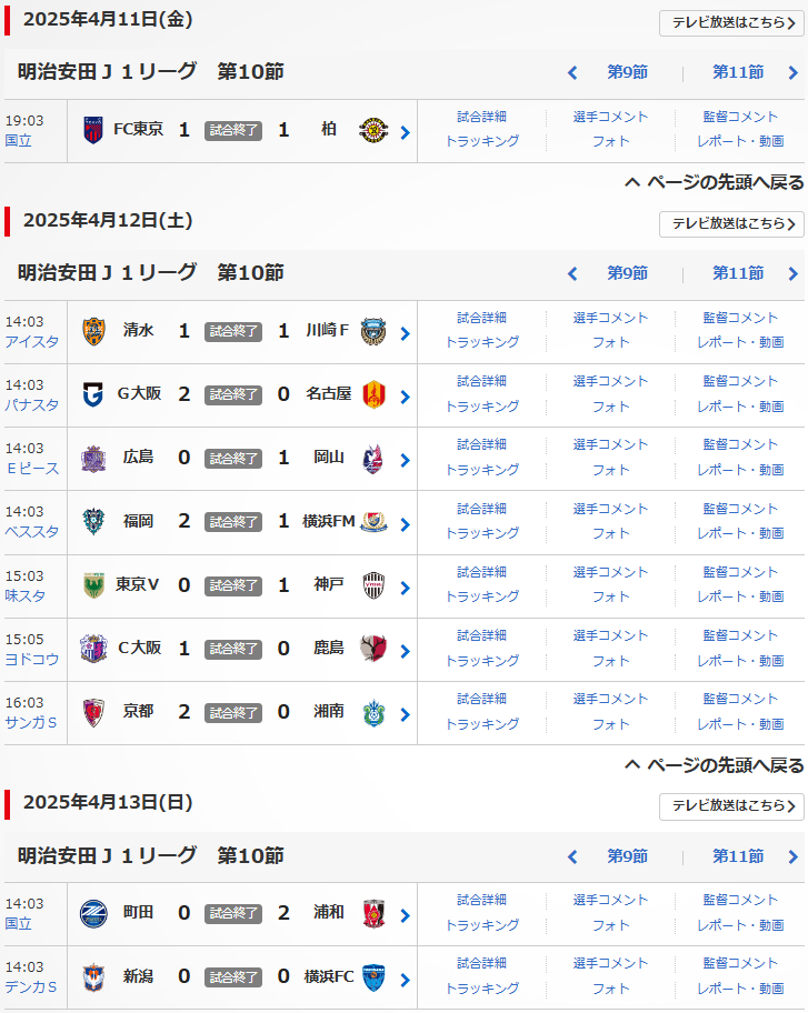 明治安田J1リーグの第10節が、4/11(金),12(土),13(日)に行われました。