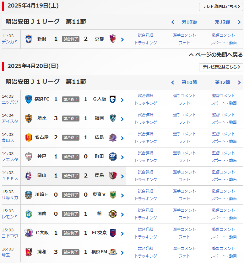 明治安田J1リーグの第11節が、4/19(土),20(日)に行われました。