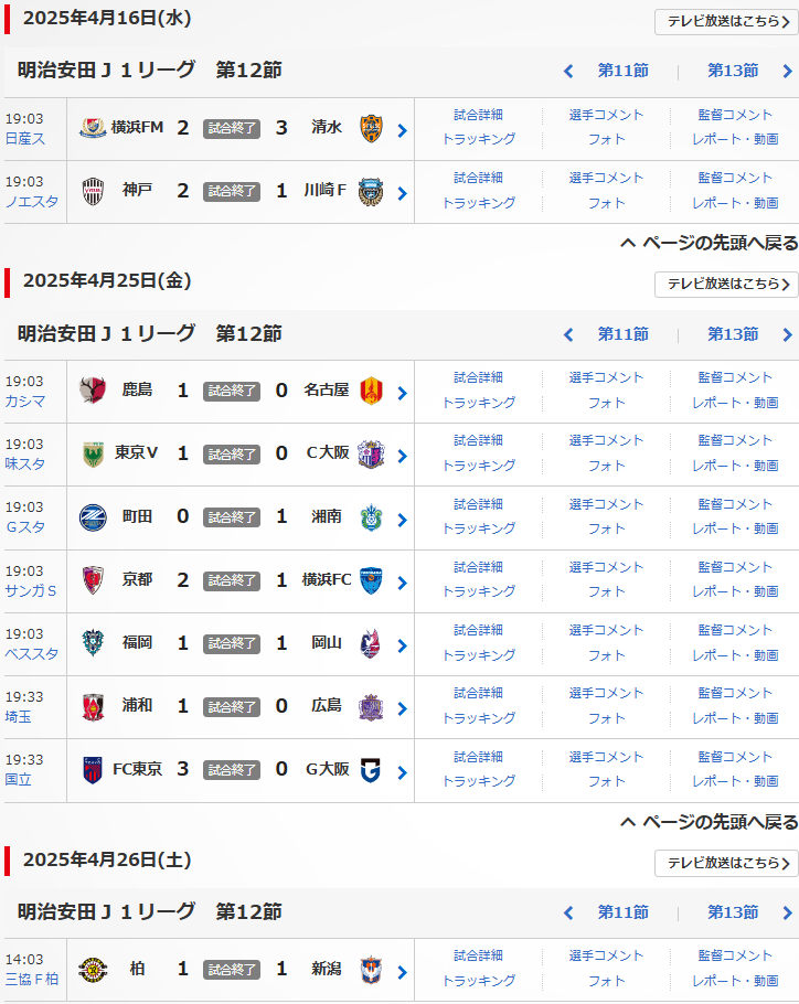 明治安田J1リーグの第12節が、4/16(水),25(金),26(土)に行われました。