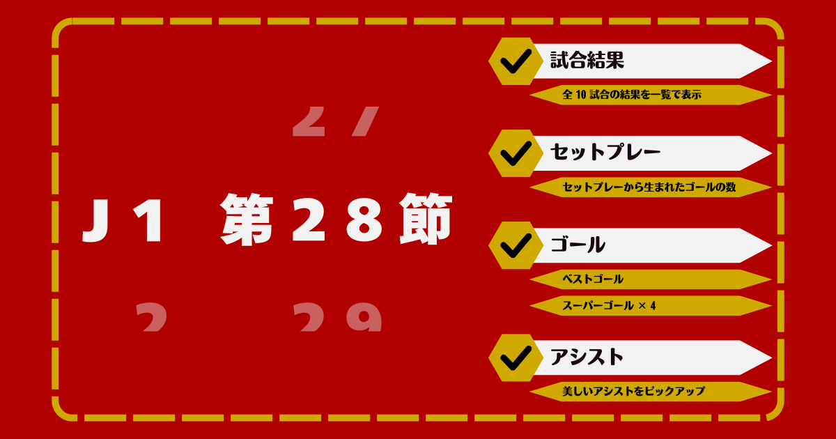 明治安田J1リーグの第28節が、8/30(土),31(日)に行われました。
