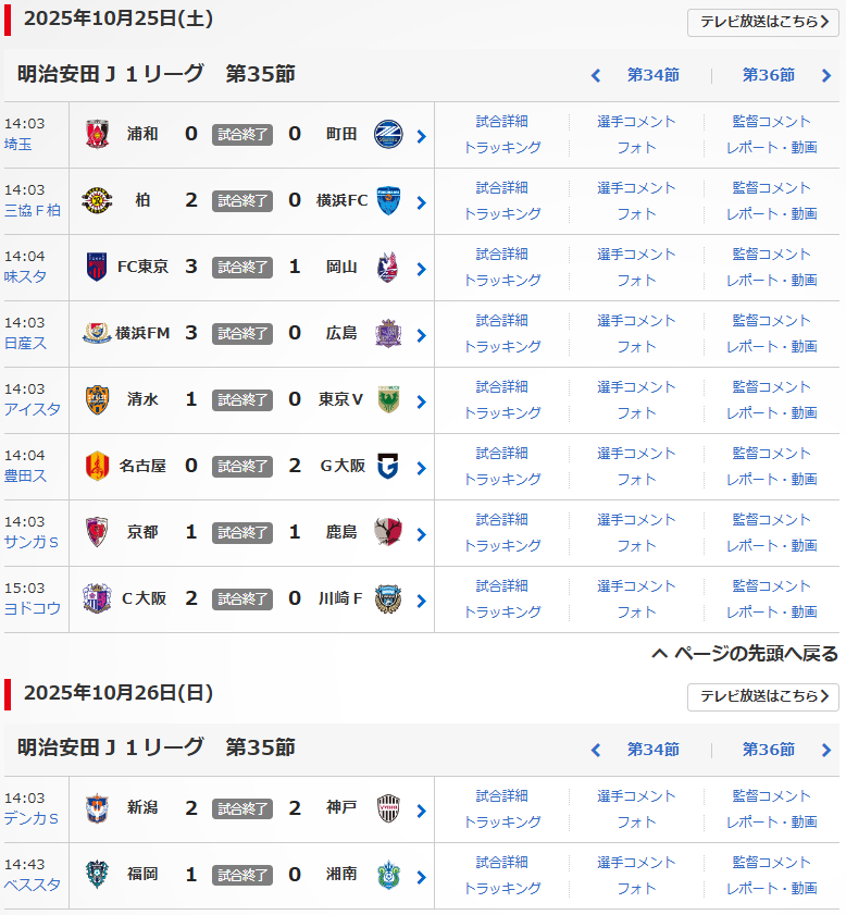 明治安田J1リーグの第35節が、10/25(土),26(日)に行われました。