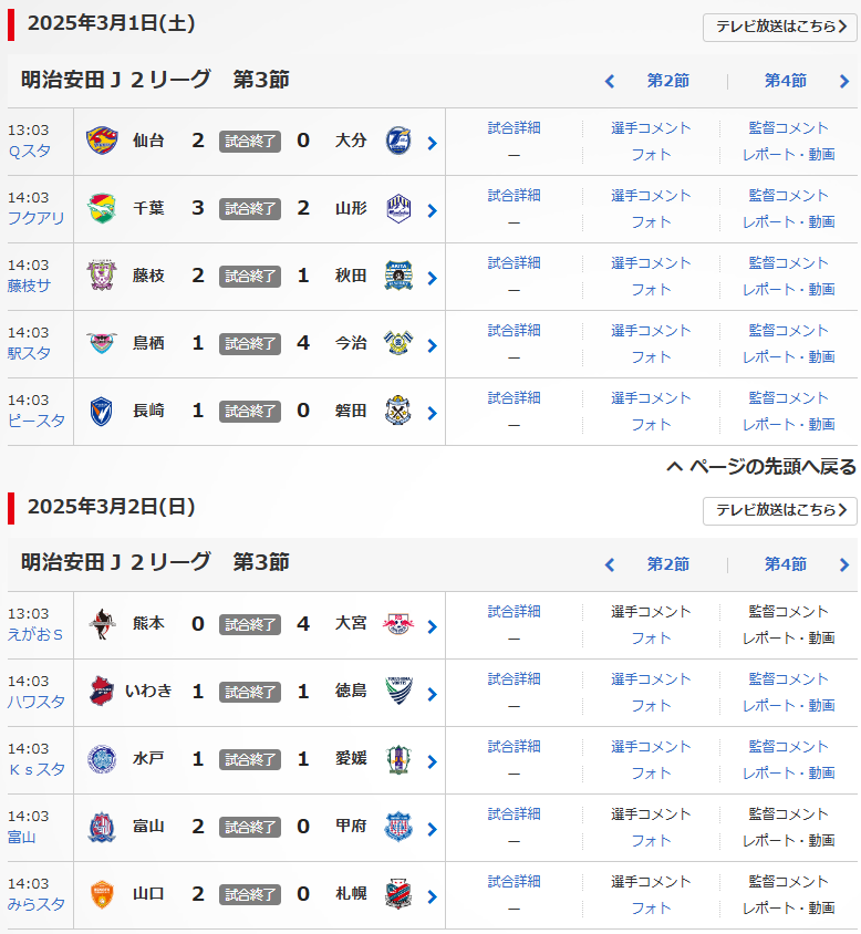 明治安田J2リーグの第3節が、3/1(土),2(日)に行われました。