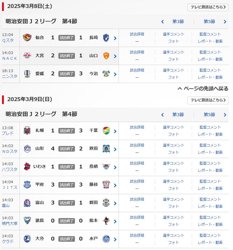 明治安田J2リーグの第4節が、3/8(土),9(日)に行われました。
