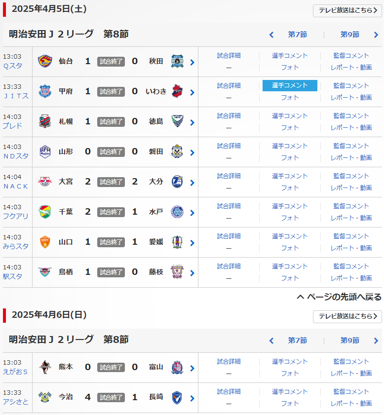 明治安田J2リーグの第8節が、4/5(土),6(金)に行われました。