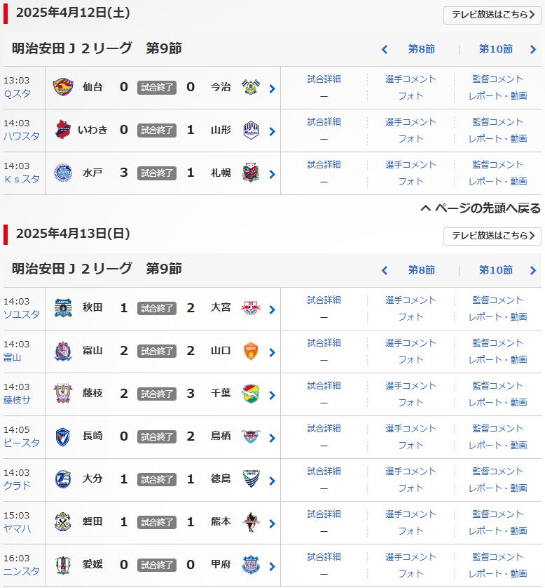 明治安田J2リーグの第9節が、4/12(土),13(日)に行われました。