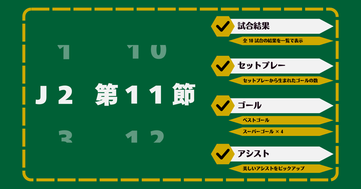 明治安田J2リーグの第11節が、4/25(金),26(土)に行われました。