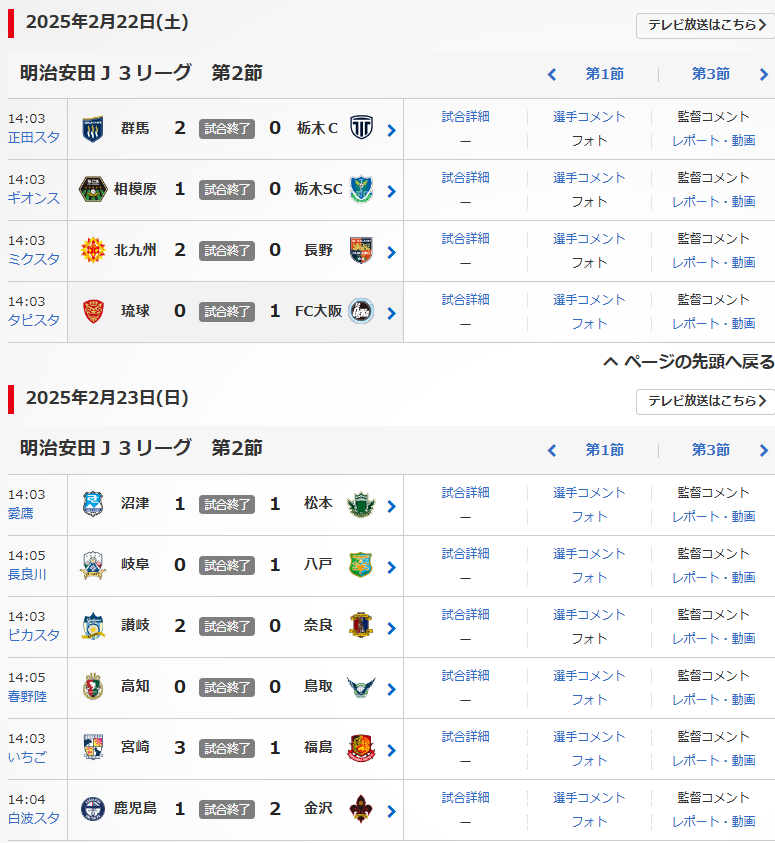 明治安田J3リーグの第2節が、2/22(土),23(日)に行われました。