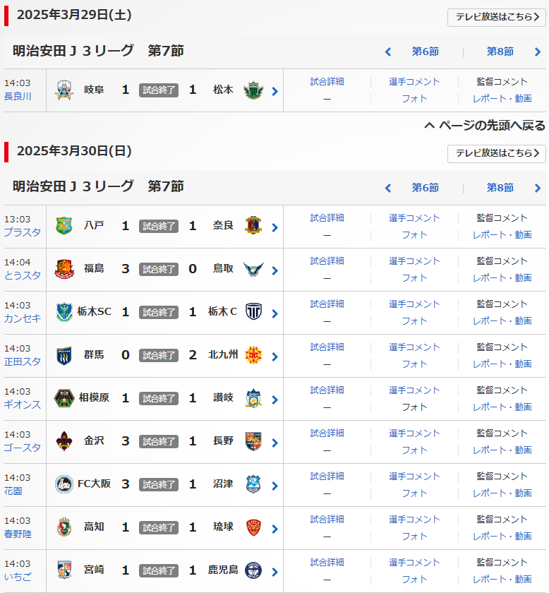 明治安田J3リーグの第7節が、3/29(土),30(日)に行われました。