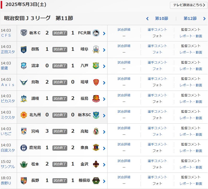 明治安田J3リーグの第11節が、5/3(土)に行われました。