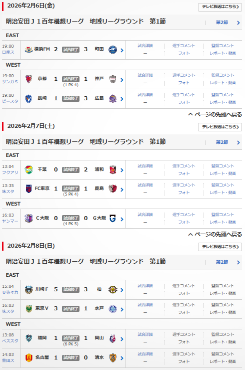 このページでは、”明治安田J1百年構想リーグ”地域リーグラウンド第1節の試合結果を整理しつつ、