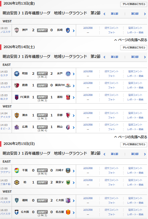 ”明治安田J1百年構想リーグ”地域リーグラウンド第2節が、2/13(金),14(土),15(日)に行われました。