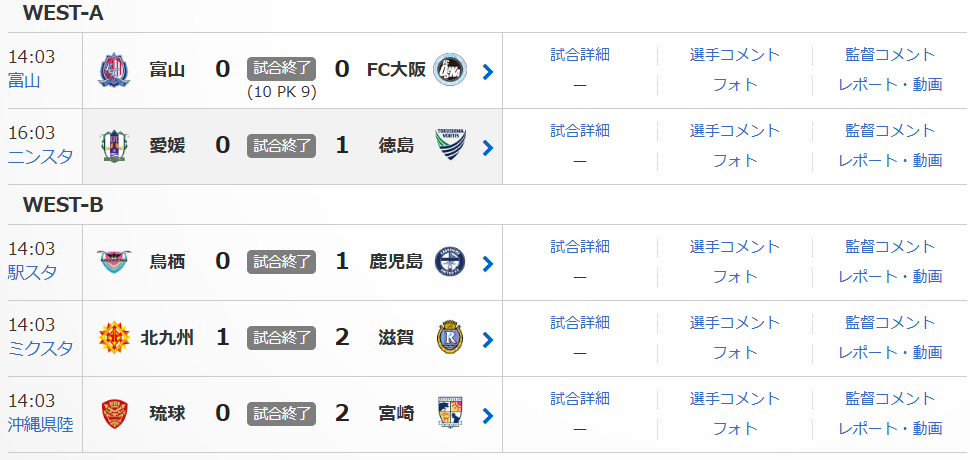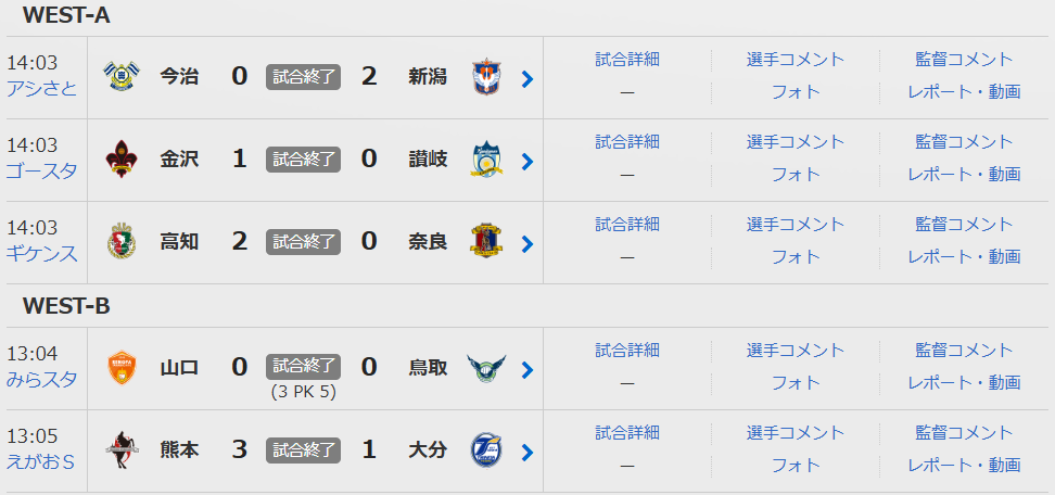 ”明治安田J2・J3百年構想リーグ”地域リーグラウンドWEST-A,B第4節の試合結果を整理しつつ、