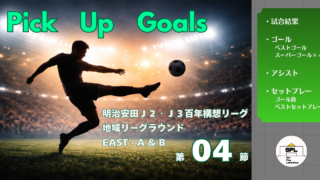”明治安田J2・J3百年構想リーグ”地域リーグラウンドEAST-A,B第4節の試合結果を整理しつつ、・とても素晴らしいと感じたベストゴールを1つ・思わず声が出たスーパーゴールを4つ・ゴールを完成させた美しいアシストをピックアップして紹介して...