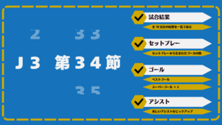 明治安田J3リーグの第34節が、11/2(日),(月)に行われました。 10試合が行われ、26ゴールが生まれました。 ▷試合結果 ▷セットプレー ・ CK4・ FK0・ PK1・ スローイン2・ 他0☆ 合計7 ▷ゴールをピックアップ ☆ベ...